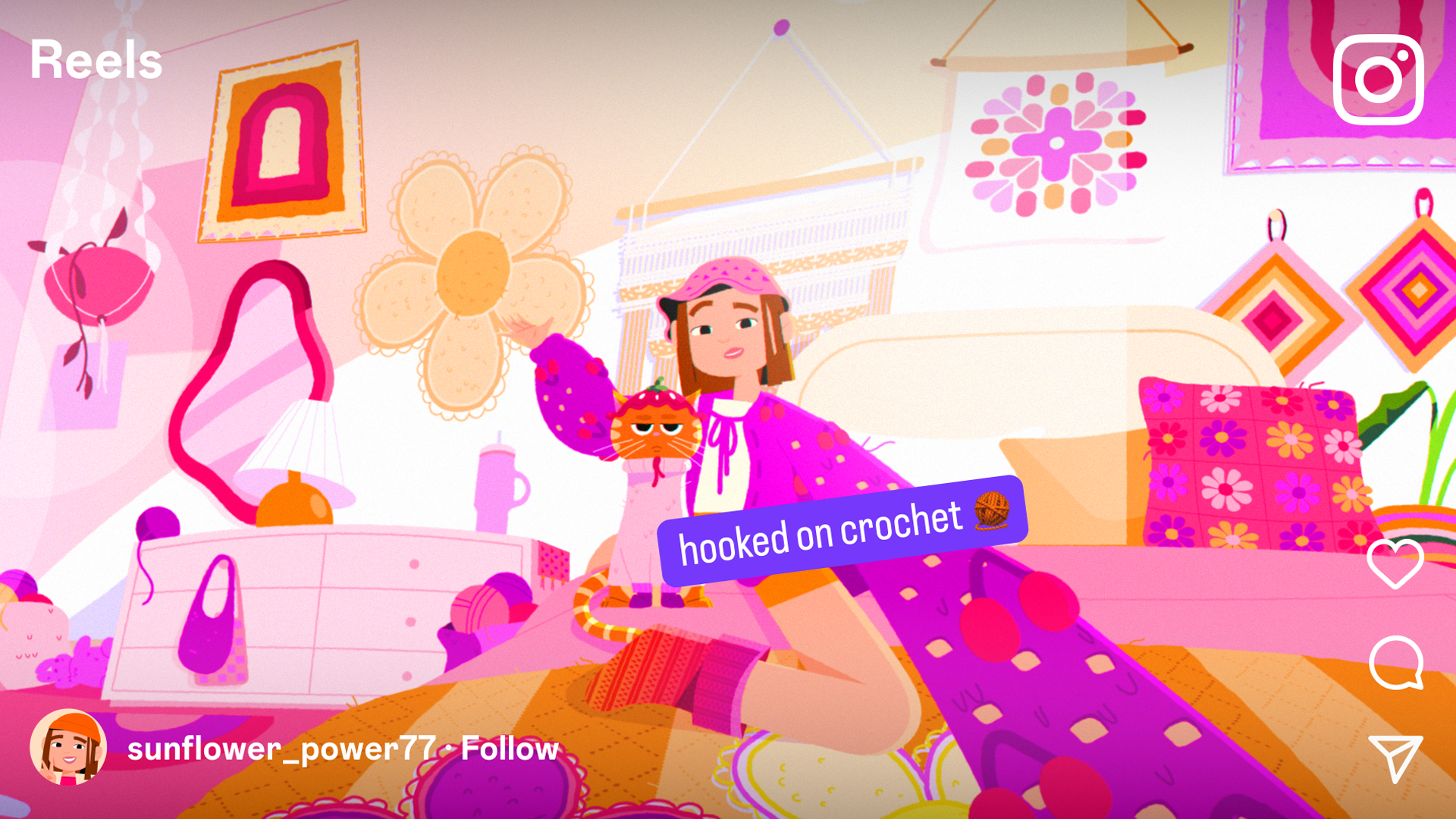 For Instagram’s Hobbies, we created a colorful 2D film that follows characters immersed in their passions, from crochet to gardening to candle making. Each scene rotates seamlessly as their creativity flows into the platform, where sharing becomes community. With bold colors and energetic pacing, the piece celebrates how simple hobbies grow when people connect.