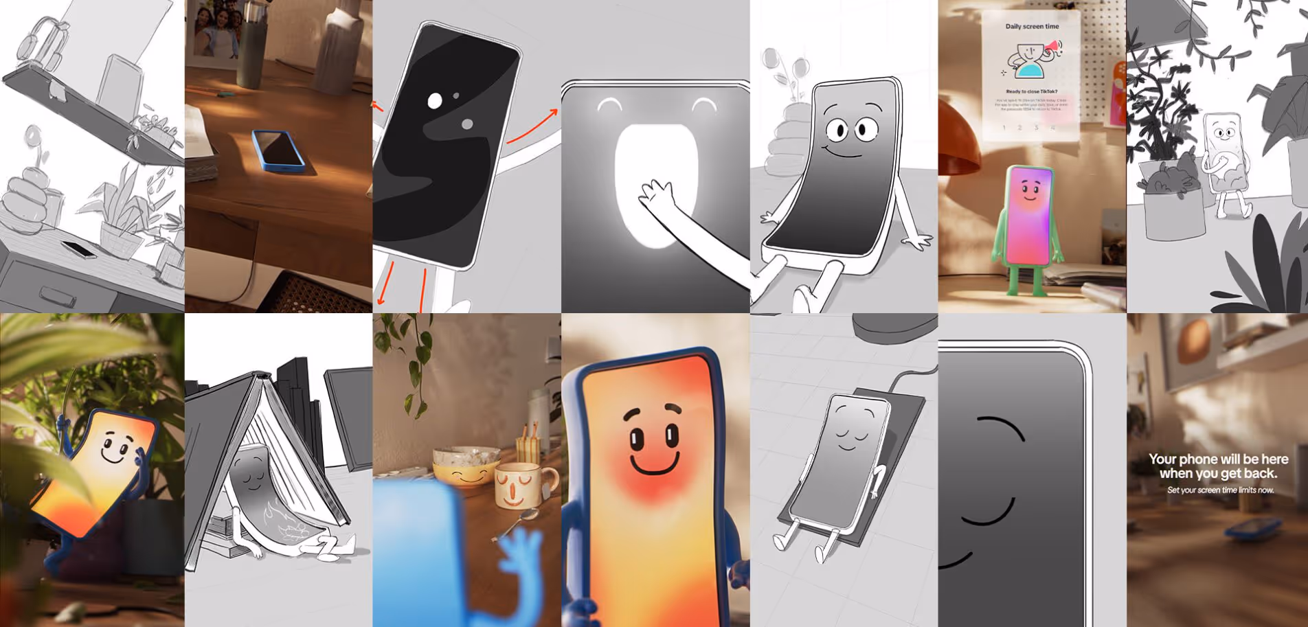 For TikTok’s Youth Wellness initiative, we created a full 3D masterpiece that follows a phone with quirky humanoid traits as it encourages its user to take healthy breaks. The character comes to life when the device is set aside, reading, resting, and enjoying small moments. With warm storytelling and expressive animation, the film promotes balance in a way that feels friendly and relatable.